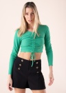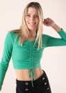 Блузка Only Shia модного укороченного покроя с длинными рукавами изготовлена из мягкого трикотажа. Широкий вырез с регулируемой горловиной спереди, сборки придают общему образу мягкость летнего настроения. Идеально подходит для сочетания как с шортами, так и с юбками в теплое время года. Рост модели - 177 см, носит размер S.
