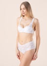 Эти красивые кружевные зеленые женственные трусики обеспечивают непревзойденный комфорт их обладательнице. Кружево обладает приятной эластичностью, которая позволяет ткани облегать тело пользователя. Нижняя часть приятно мягкая на коже. Рост модели 179 см, носит размер 36. Материал: нейлон/полиамид 82%, эластан 18%. Цвет: белый.