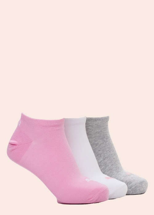 Приятные, мягкие носки от бренда Puma. На пятке расположено название бренда, на мыске логотип бренда. В комплекте 3 пары носков. Параметры изделия. Состав материала: хлопок 72%, полиэстер 24%, полиамид 3%, эластан 1%. Цвет: серый/белый/розовый