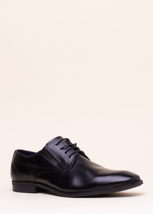 Чрезвычайно прочная обувь от дизайнеров Bugatti. Высококачественная глянцевая гладкая кожа, использованная при производстве поверхности, классический стиль дерби которой создается за счет прикрепления ленты, которая переплетается через неприметные ночные галстуки. Эластичные резиновые вставки с обеих сторон, внутренняя часть из натуральной кожи и мягкая стелька, поддерживающая естественную форму стопы, добавляют комфорта при ношении. Подошва из резины снижает риск поскользнуться, а особая конструкция каблука высотой 2 см снижает удар при ходьбе. Обувь больше подходит для узких ног. Вес 46-го размера - 383 г. Цвет: черный.