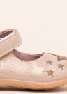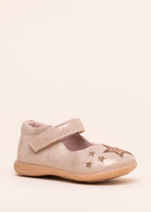 Золотые туфли Happy Bee принцессы имеют удобный круглый мысок, который украшен бабочкой с камнями. Легко регулируется с помощью ремешка на липучке. Внутренняя часть сделана из натуральной кожи, а прочная резиновая подошва обеспечивает хорошую гибкость и сцепление. Вес 24-го размера - 63 г. Цвет: золотистый.