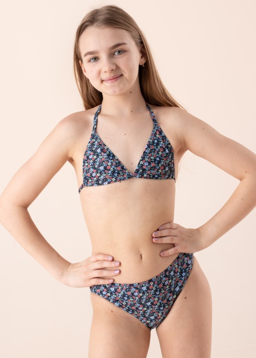 Милая, детская одежда для загара Felina от Name It имеет эффектный узор и идеально подходит для лета! Отличный компаньон для отдыха на пляже и купания. Застежка верхней части удобно регулируется лямочками, а треугольный фасон выражает тренд. Нижняя часть имеет отличное покрытие и удобно мягка для детской кожи. Рост модели 147 см, изделие в размере 146.