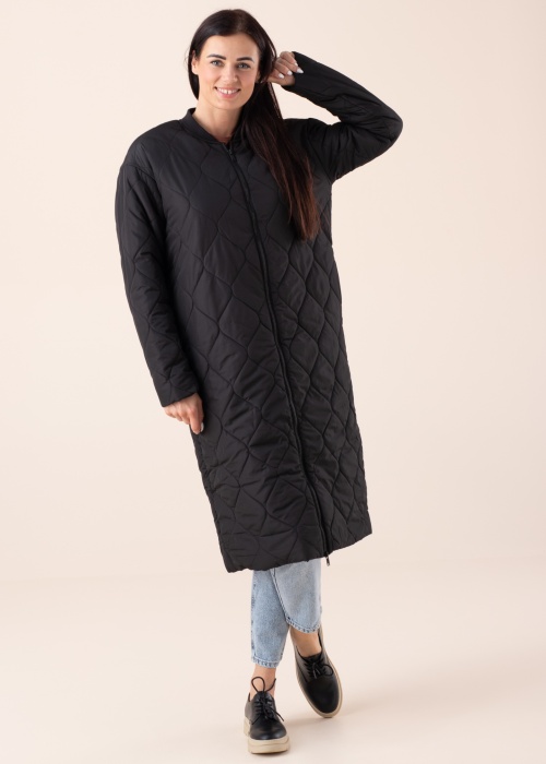 Весенне-осеннее пальто Sophia от Noisy May модное и практичное. Стёганое пальто «песочные часы» имеет широкий прямой крой с вырезом «бомбер» в рубчик и двусторонним замком спереди. По бокам расположены открытые карманы, концы рукавов свободно ниспадают. Внутренняя часть выполнена из гладкого шелковистого переработанного полиэстера. Рост модели 176 см, изделие в размере S. Длина по спинке 110 см.