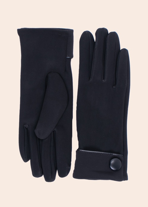 Женские перчатки из красивого эластичного материала от Soyacocept. Красивый отворот с изящной пуговицей отделан кантом. Подкладка из мягкого мехового текстиля. Параметры изделия. Состав материала: акрил 50%, полиэстер 45%, эластан 5%. Цвет: чёрный