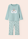 Пижама для девочек от Name It Mini отлично подходит для повседневного использования благодаря своему комфорту и приятному на ощупь материалу. Она имеет длинные рукава, рисунок на передней стороне, резинку на поясе, мягкий воротник и милые оборки внизу, что делает её нежной к коже и привлекательной.