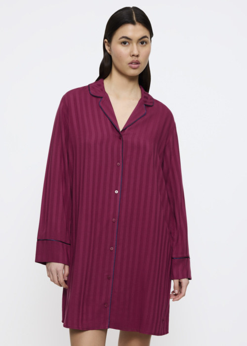 Triumph предлагает элегантное женское ночное платье с изысканным дизайном. Оно имеет воротник с отделкой и застежку на пуговицы, что придает ему классический вид. Материал приятный на ощупь, обеспечивая комфорт и уют во время носки.