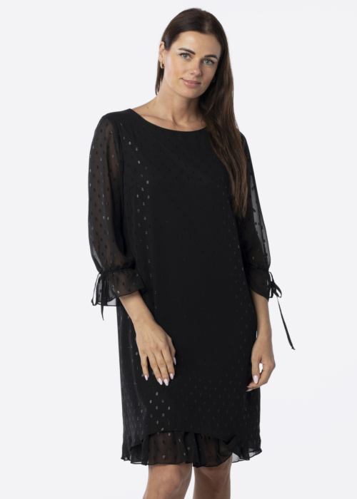 Платье Hansmark для женщин, модель Aino, представляет собой элегантное и прозрачное изделие с прямым кроем, которое отличается легкостью и подвижностью. Интересный узор и романтичные воланы на рукавах придают платью особый шарм. Модель имеет рост 176 см и носит размер 38.