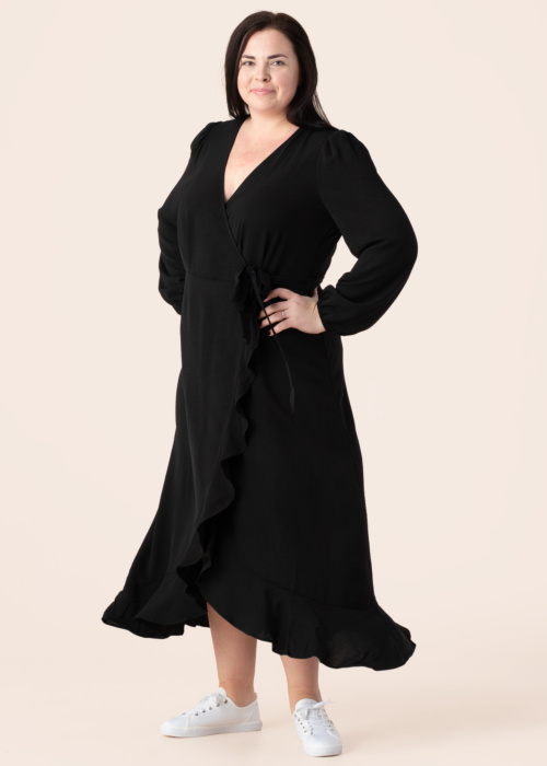 Платье Vero Moda Curve Alva отличается элегантным дизайном с запахом, который придаёт образу утончённость. Лёгкая ткань и романтичные воланы по низу создают воздушный и нежный силуэт, а пояс, завязывающийся на талии, подчёркивает фигуру. Эластичные манжеты на рукавах добавляют удобства. Рост модели составляет 167 см, на ней размер 46.