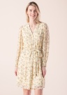 Красивое платье EsQualo подходит для повседневного ношения. Лёгкое очаровательное платье - молодёжное и молодёжное. Спереди имеет застёжка на пуговицы , в середине- пояс на завязках , также на концах рукавов резинка. Рост модели - 177 см и носит размер 36.
