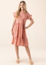 Симпатичное платье Name It Kids подходит для летного ношения. В стиле ретро лёгкое платье- летящее и лёгкое. на плече- привлекательный волан , на холке имеет застёжка на пуговицы и юбочную часть составляют расширающиеся воланы. Рост модели - 147 см и носит размер 152.