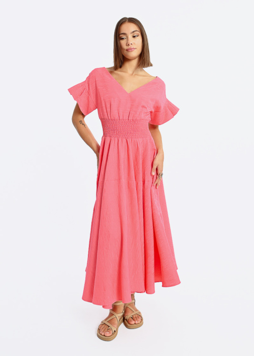 Платье Lili Sidonio для женщин — это стильный выбор для летнего сезона. Оно изготовлено из прочной ткани и имеет женственный силуэт с V-образным вырезом. Платье украшено эластичной вставкой на талии и застегивается на молнию сзади, что делает его идеальным для летних прогулок.