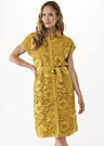 Платье от Mexx для женщин выделяется ярким узором и воротником с отделкой. Оно украшено кружевом, что делает его особенно привлекательным. Платье имеет пояс на талии и застегивается на пуговицы.