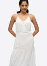 Платье SuperDry для женщин — это стильный и удобный выбор для летних дней. Оно выполнено в нежном цвете и имеет мягкую, полупрозрачную текстуру, что делает его идеальным для теплой погоды. Платье украшено кружевом спереди и сзади, а также перфорацией, добавляющей изысканности и женственности.