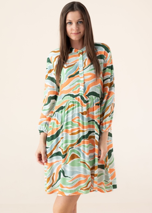 Летнее платье Tom Tailor подходит для повседневного ношения дома, на работе и отдыхе. Рукава до логтя платье круглая горловина и круглая горловина. В качестве дополнительного плюса товар - тонкий и летящий. На горловине застёжка на пуговицы и на концах рукавов резинка , также игривый узор добавляет привлекательности. Товар входит в коллекцию Be Part, созданную из перерабатываемых материалов. Рост модели - 177 см и носит размер 36.
