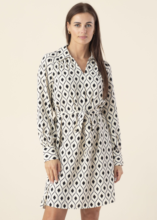 Платье от Vero Moda для женщин привлекает внимание своим уникальным узором. Оно имеет стильный воротник с отделкой и длинные рукава, что добавляет ему элегантности. Лёгкая ткань обеспечивает комфорт при носке. Модель ростом 176 см носит размер S.