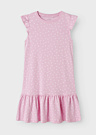 Платье для девочек от Name It под названием Vida идеально подходит для летнего сезона благодаря своему мягкому и дышащему материалу. Очаровательный цветочный узор и романтичные оборки по нижнему краю придают ему особую привлекательность. Эластичная ткань и ребристый воротник обеспечивают комфорт и свободу движений, а короткие рукава делают его идеальным выбором для теплых дней.
