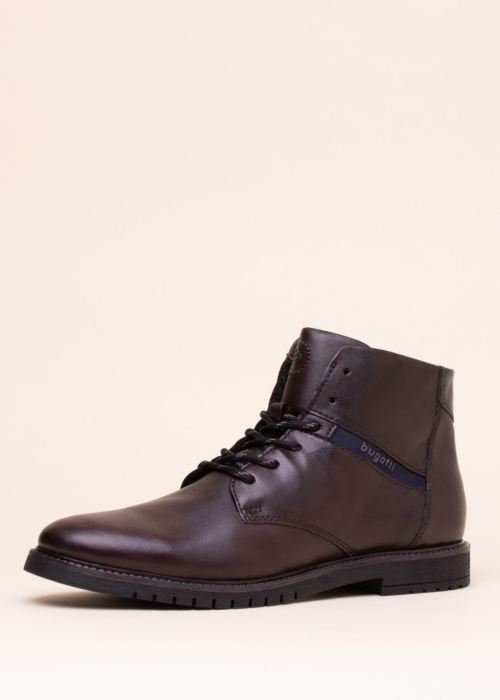 Классические полусапоги Bugatti для мужчин отлично подойдут стильному и элегантному мужчине. На внешней стороне обуви находится фирменная надпись, которая придаёт ей особый шарм. Спереди обувь имеет шнуровку, а на внутренней стороне расположена молния для удобства.