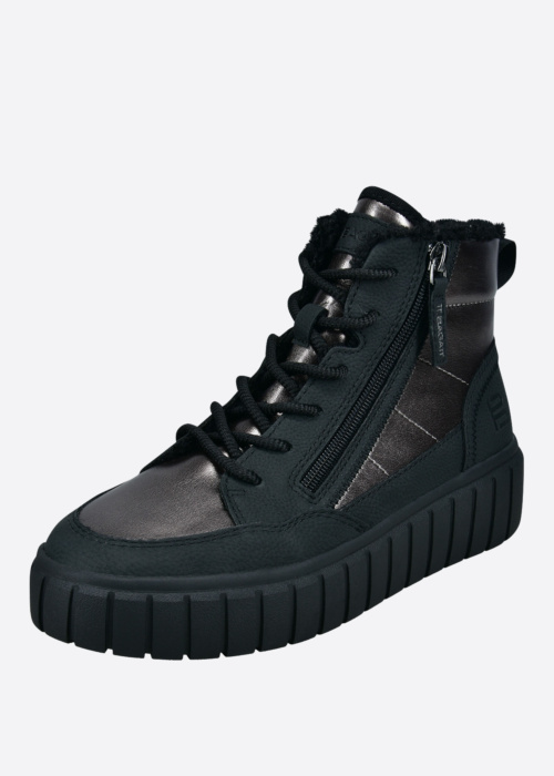 Женские полусапоги Piper Revo от Bagatt представляют собой стильную и эффектную обувь для современных женщин. Эти сапоги отличаются молодежным дизайном и платформенной подошвой, что делает их идеальными для повседневной носки. Они обеспечивают тепло и комфорт в холодное время года благодаря своим материалам. Лакированная поверхность придает обуви блеск и элегантность. Спереди имеется шнуровка, а сбоку - молния для удобства надевания. Логотип на пятке и декоративные швы по бокам подчеркивают уникальный стиль этой модели.