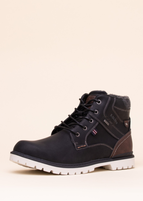 Мужские зимние ботинки от s.Oliver прекрасно сочетают в себе простоту и удобство, что делает их идеальными для повседневной носки. На внешней стороне есть фирменная надпись, а боковой шов добавляет стильный акцент. Внутренняя молния и шнуровка спереди обеспечивают легкость надевания. Благодаря специальной мембране, обувь остаётся водоотталкивающей и дышащей. Мягкая стелька Soft Foam обеспечивает максимальный комфорт и приятные ощущения при каждом шаге.