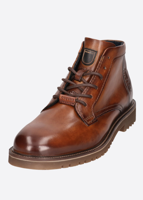 Мужские полусапоги Seve от Bugatti — это классическая и удобная обувь, идеально подходящая для повседневного ношения. Эти полусапоги привлекают внимание своим практичным дизайном и стильным внешним видом. Они оснащены шнуровкой спереди, молнией на внутренней стороне и логотипом на внешней стороне.