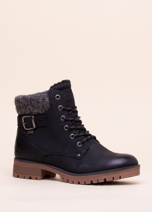 Минималистичный полусапоги Tom Tailor подходят идеально для повседневного ношения. Поверхность скомбинирована искусственная кожа и акцента добавляет ремень , также простой дизайн завораживает. Внутреннюю часть покрывает подкладка из меха с толстым ворсом и стельку текстильная подкладка с утеплителем. Прочная резиновая подошва обеспечивает хорошее сцепление. Благодаря мембране Tex обувь влагоотталкивающая и дышащая. Комфорт при движении в течение всего дня гарантирован!