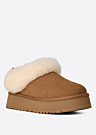 Женские тапочки Tazelle от UGG - это отличный выбор для комфортного отдыха. Они имеют мягкую подошву с небольшой платформой и открытой пяткой, что делает их удобными и легкими в использовании. Тапочки украшены пушистым краем и логотипом бренда на пятке, добавляя стильный акцент.