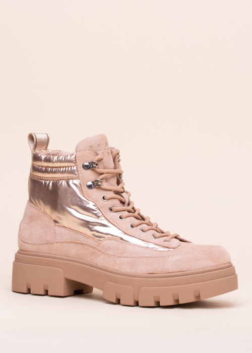 Модные современные полусапожки Replay Marywood выполнены из текстиля, имитирующего замшу и золотой ткани с эффектной мягкой отделкой. Удобная шнуровка. Комфортная петля на задней части голенища с названием бренда облегчает процесс обувания. На язычке расположен отличительный знак бренда. Внутренняя отделка выполнена из мягкого текстиля. Стелька оснащена технологией Ortholite®, обеспечивающей хорошую циркуляцию воздуха и комфортную мягкость каждого последующего шага. Массивная подошва с глубоким резиновым протектором обеспечивает надёжное сцепление с разными поверхностями. Высота каблука: 5 см. Вес размера 39: 499 г. Цвет: бежевый/золотой