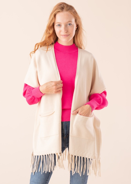 Своеобразное пончо EsQualo позволяет везде чувствовать себя хорошо. Стильное и уютное пончо- мягкое и уютное и практичности добавляют открытый карман на передней стороне. Рост модели - 174 см и носит размер XS-S.