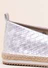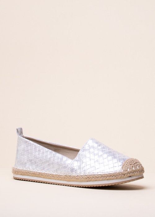 Красивая повседневная обувь Bullboxe идеальна для летнего сезона и прекрасно комбинируется и с юбкой, и с платьем. Эффектная серебристая поверхность из искусственной кожи. Нос с оригинальной вязаной отделкой. Подошву обрамляет стильный плетёный шнур. Внутренняя отделка из текстиля. Стелька с мягкой отделкой обеспечивает комфорт. Гибкая резиновая подмётка обеспечивает сцепление с разными поверхностями. Параметры изделия. Вес размера 39: 178 г. Цвет: серебристый/бежевый