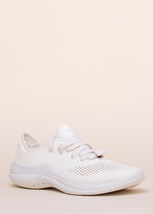 Повседневная обувь Crocs Literide отличо выполняет своё предназначение. Поверхность с вентиляционными отверстиями изготовлена из синтетического материала. Закрепляются на ноге при помощи классической шнуровки. Внутренняя поверхность также из синтетического материала, а с рельефными выпуклостями подошва смягчает каждый шаг. Внешняя подошва из резиновой смеси имеет отличное сцепление с различными поверхностями. Вес изделия 39-40-го размера 257 г. Цвет: белый.