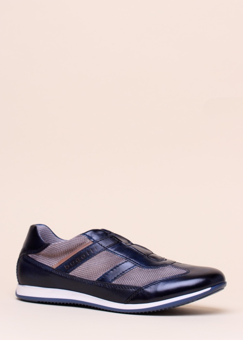 Повседневная обувь в тёмно-синих и серых тонах Bugatti Tomeo вызывает симпатию удобной посадкой и модным дизайном. Белая промежуточная подошва добавляет спортивный нюанс. Обувь выполнена из качественной кожи и структурного текстиля. Изделие легко обувается на ноги, благодаря потайной эластичной вставке внутри язычка. Внутренняя отделка выполнена из дышащего текстиля. Съёмная стелька в области пятки с отделкой из качественной кожи, в области подушечки стопы из уютного текстиля. Резиновая подошва с хорошим сцеплением. Вес размера 46: 421 г. Цвет: тёмно-синий/серый