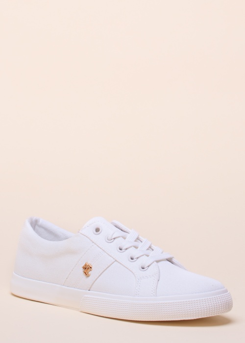 Классические кроссовки Ralph Lauren Polo Janson в чистом стиле выполнены из натурального белого текстиля, поверхность которого украшена скромной этикеткой бренда. Классическая застежка на ремешке оплетена металлическими оплетками для обеспечения скорости, плавности и комфорта при завязывании ремешков. Внутренняя подкладка и роскошная стелька покрыты высококачественным текстилем. Подошва резиновая, что обеспечивает хорошее сцепление с дорогой, к тому же она якобы мягкая, рассеивающая удары при ходьбе. Вес 39го размера - 296 г. Цвет: белый