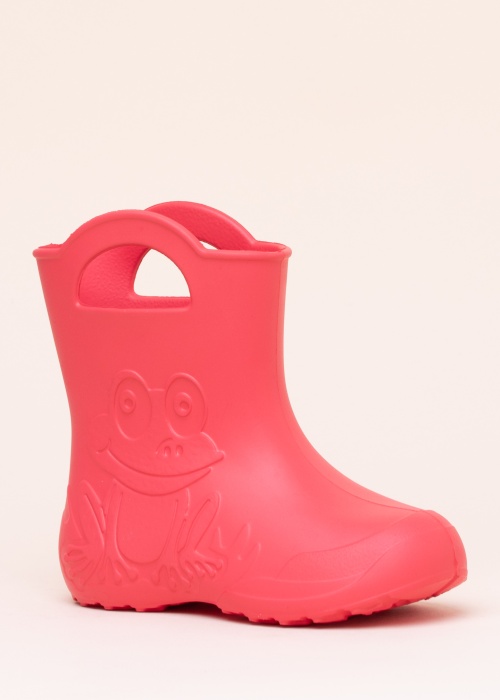 Красивые, яркие резиновые сапоги от Camminare идеально подходят для повседневного ношения. Сапоги изготовлены из легкой пенистой резины. По бокам находятся эффектные, выступающие детали, которые создают эффектные образы лягушки снаружи. По бокам имеются ручки для удобного обувания. Внутренняя часть удобно сидит на ноге, мягкая стелька обеспечивает комфорт при каждом шаге, при желании ее можно снять. Подошва имеет более плотный рисунок, способствующий сцеплению с поверхностями. Вес размера 26-27 - 106 г.