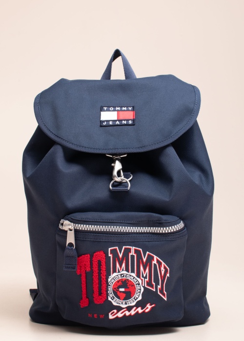 Привлекательного внешнего вида рюкзак Tommy Jeans хорошо подойдёт для разнообразия вместо сумки. Рюкзак закрывается сверху клапаном, закрепляющимся спереди карабином и украшен классической эмблемой бренда. На передней части снизу практичный карман на молнии, где удобно держать мелкие вещи. Поверхность кармана украшают характерные для бренда элементы. Отверстие сумки регулируется тоннельным шнурком, внутренность покрыта шелковистым текстилем. Вместительный основной отдел имеет помещённые на стенках один карман на молнии и один открытый отдел для умного устройства размером до 13". При производстве изделия использован в объёме 100% переработанный полиэстер! Длина ручки 21 см, длина регулируемых с мягким уплотнением плечевых ремней до 92 см. Размеры сумки: высота 40 см, ширина 30 см, ширина дна 15 см. Цвет: тёмно-синий.