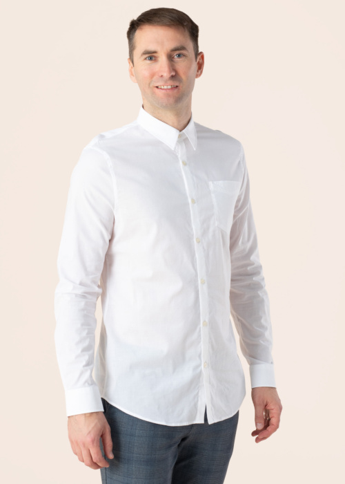 Классическая мужская рубашка Guess Collins сочетает в себе стиль и комфорт, идеально подходя для любого случая. Она имеет воротник на стойке и застегивается на пуговицы, а также оснащена длинными рукавами, что делает её универсальной и практичной. Благодаря дышащему материалу и облегающему крою Slim Fit, эта рубашка обеспечивает максимальный комфорт в течение всего дня. Модель ростом 188 см носит размер L.
