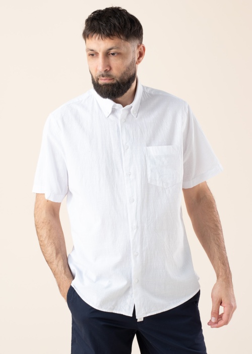 Со вкусом рубашка Erla of Sweden - хороший выбор для ценящего классику. Лёгкая летняя рубашка - воротник с отворотом и короткие рукава. Спереди застёжка на пуговицы и на груди карман. Рост модели - 188 см и носит размер L.