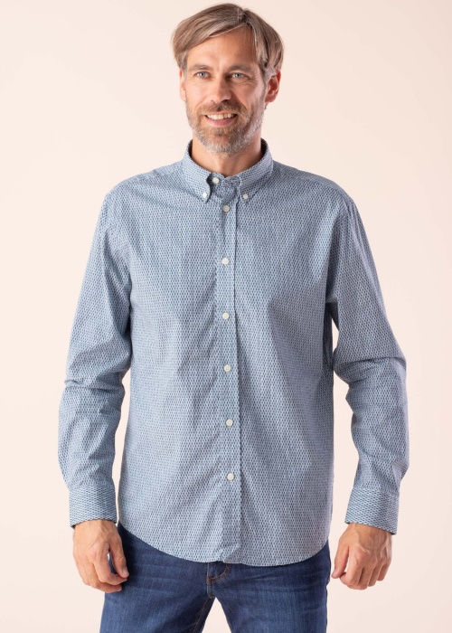 Солидная рубашка Esprit освежает и добавляет вкуса. Покрой Regular Fit , классическая рубашка- воротник с отворотом и стильная. Спереди застёжка на пуговицы, на концах рукавов пуговица и на левом рукаве знак бренда. Рост модели - 195 см и носит размер L.