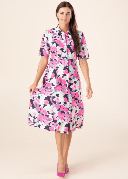 Очаровательное платье-рубашка от Tom Tailor с цветочным узором и длиной миди. Короткие рукава и легкий, воздушный материал делают его идеальным как для повседневной носки, так и для более официальных мероприятий. Приталенный крой и застежка на пуговицы спереди добавляют элегантности и утонченности. Платье принадлежит коллекции Be Part, которая создана из экологически устойчивых материалов, таких как волокно LENZING™ ECOVERO™. Это волокно производится из сертифицированных возобновляемых древесных источников с использованием экологически чистого производственного процесса и соблюдением высоких экологических стандартов. Модель на фото ростом 176 см и носит размер 36.