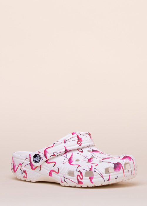 Шикарные классические белые сандалии Classic Pool от Crocs идеально подходят для озорного ребенка. Поверхность украшена эффектным узором с изображением фламинго. Сандалии крепятся вокруг пятки тонкой вставкой с выступающей надписью бренда. Круглые отверстия на верхней поверхности и квадратные отверстия на носу обеспечивают воздухопроницаемость. Стелька имеет чашеобразную форму и обеспечивает комфорт при ношении, массируя стопу. Подошва имеет рисунок, что улучшает сцепление с поверхностями. Вес размера 34-35 - 119 г.