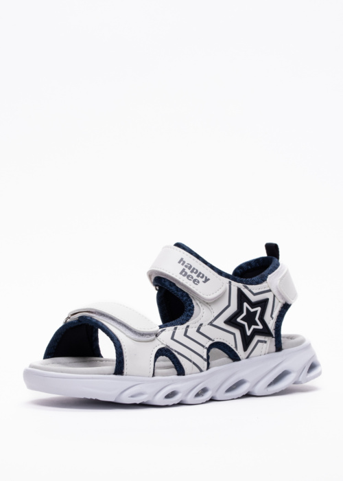 Сандалии Happy Bee для мальчиков — это отличный выбор для активных детей. Они легкие и стильные, что делает их подходящими для различных спортивных мероприятий. Эти сандалии можно носить как дома, так и на улице благодаря их универсальному дизайну. Застежки на липучках на верхней части и пятке обеспечивают удобную посадку и легкость в использовании. На внешней стороне сандалий есть декоративные элементы и логотип бренда, которые добавляют стильный акцент.