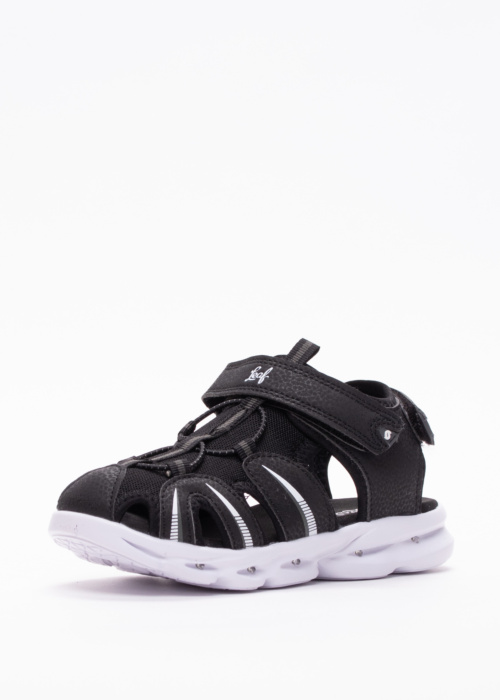 Светящиеся сандалии для мальчиков Leaf Skulltorp - отличный выбор для активных детей. Эти сандалии легкие и имеют закрытый носок, что обеспечивает дополнительную защиту. Они подходят как для использования в помещении, так и на улице, что делает их универсальными. Верхняя часть и пятка фиксируются с помощью липучек, что позволяет легко надевать и снимать обувь. Боковые части сандалий обеспечивают хорошую вентиляцию, что особенно важно в теплую погоду.