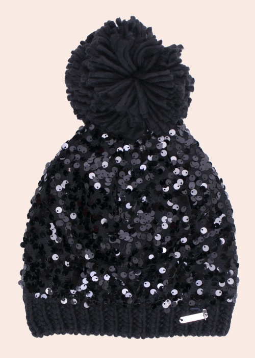 Яркая шапка Guess восхищает каждую девушку и выделяется из серой массы! Шапка изготовлена из крупной плетеной ткани в рубчик, которая идеально подходит для ношения в переходный сезон. Внешняя поверхность имеет сетчатую ткань, покрытую эффектными пайетками, которая блестит и очень красивая. Кроме того, внизу шапки есть небольшой логотип бренда, а на голове - пышный помпон. Материал: основной материал акрил 100%, сетка полиэстер 100%. Цвет: чёрный.