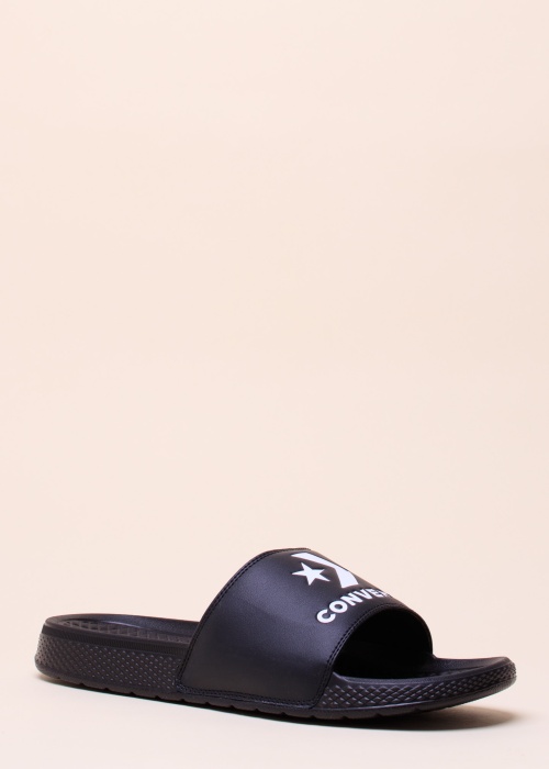 Простые шлёпанцы с поверхностью из искусственной кожи Converse идеальны для повседневного гардероба. Поверхность изделия декорирована эффектным названием бренда. Мягкая внутренняя отделка покрыта комфортным для стоп текстилем. Стелька чашевидной формы с рельефным узором, массирующим стопы. Толстая подошва смягчает шаг. Надёжный протектор обеспечивает сцепление с поверхностями. Вес размера 46,5: 140 г. Цвет: чёрный