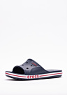Мужские шлепанцы Crocs Bayaband — это практичная и удобная обувь, идеально подходящая как для походов в бассейн, так и для отдыха на пляже. Верхняя часть шлепанцев имеет отверстия, что обеспечивает дополнительную вентиляцию и комфорт при носке. На внешней стороне расположены фирменные логотипы, подчеркивающие стиль и качество бренда.