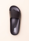 Модная шлёпанцы для бассейна Karl Lagerfeld - смелый стиль. Эти эффектная шлёпанцы для бассейна - платформа и практичная. Верх изготовлен синтетическая и акцента добавляют надпись бренда. Внутри без подкладки , также подошва из лёгкой, пенной резины и поглощает удары. Войди в новый сезон модно.