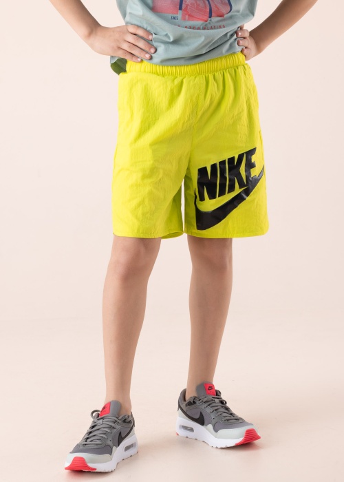 Шорты Nike классического кроя Standard Fit из пленочного материала очаровывают своим летним фасоном и цветом! Регулируемые шнурки находятся внутри эластичной талии шорт, которые позволяют отрегулировать посадку по Вашему желанию. По бокам два открытых кармана, на левой штанине изображен дерзкий и уверенный логотип бренда. Разрезы по бокам нижних краёв облегчают движение. Изделие дополнено дышащей сетчатой подкладкой. Рост модели 146 см, изделие в размере L.