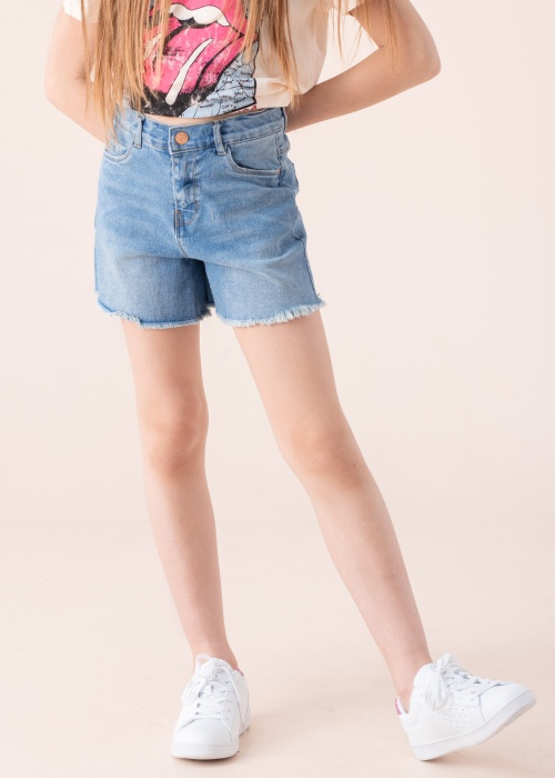 Летом самая стильная одежда - это джинсовые шорты. Шорты кроя Mom Jeans. Высокий пояс High Waist с застёжкой на молнию и крючок регулируется с изнанки дополнительно резинкой. Изделие выполнено из эластичной ткани. На передней части изделия три кармана, один из которых маленький. На задней части изделия два открытых кармана, правый из которых декорирован логотипом бренда. Свободные штанины с бахромой, добавляющей стильность шортам. Рост модели 142 см. Демонстрируемое изделие размер 146. Состав материала: хлопок 80%, переработанный полиэстер 18%, эластан 2%. Цвет: синий