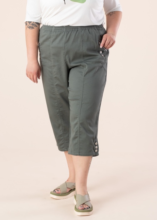 Штаны до колена Wasabiconcept подходят для проведения досуга. Летняя и эластичная талия штаны до колена- тонкая и широкие штанины. Выразительности добавляют дизайнерский шов на штанинах и сбоку открытый карман , также карман с молнией. Рост модели - 167 см и носит размер 46-48.
