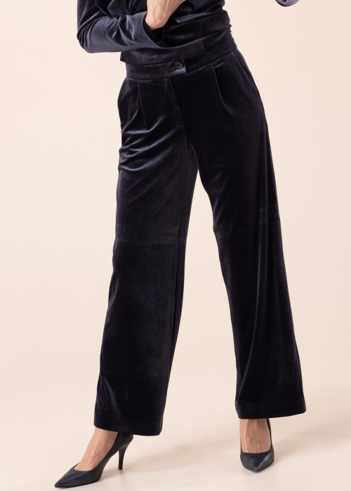 Брюки Esprit с эффектной бархатной поверхностью идеально подходят как для официальных мероприятий, так и для отдыха. Брюки широкого, прямого кроя с классической ширинкой на молнии и пуговице, практичные боковые карманы, сзади имитация карманов с листочкой. Широкий пояс на резинке сзади, благодаря чему пояс плотно прилегает к телу обеспечивая комфорт. Рост модели 178 см, надет размер 36/32. Материал: полиэстер 94%, эластан 6%. Цвет: темно-синий/военно-морской