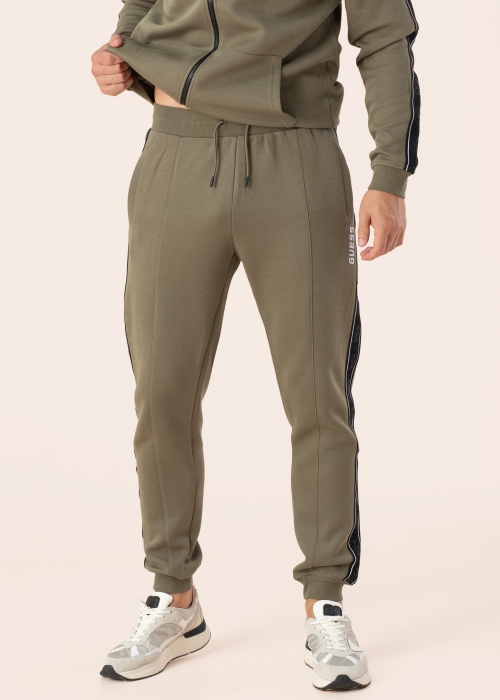 Удобные и стильные мужские спортивные штаны от Guess идеально подходят для повседневного ношения. Они сделаны из мягкого материала, который обеспечивает максимальный комфорт и практичность. Эластичный пояс с шнурком позволяет легко регулировать посадку. Спереди и сзади есть открытые карманы, а под левым карманом расположен логотип бренда. Манжеты на штанинах выполнены из резинки для дополнительного удобства. Рост модели 188 см, размер L.